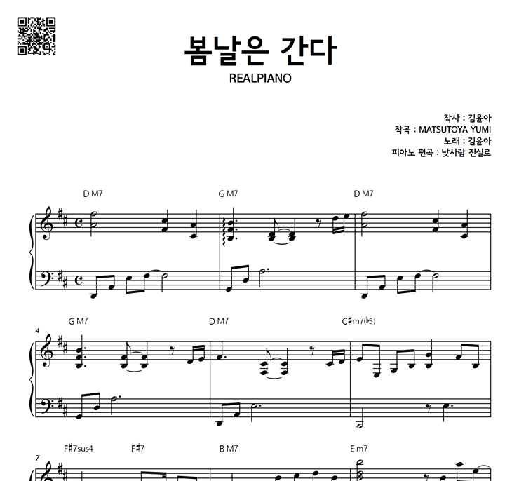 [ 김윤아 - 봄날은 간다 ] 피아노 악보입니다.