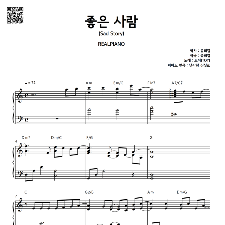 [ 토이 - 좋은 사람 (Sad Story) ] 피아노 악보입니다.