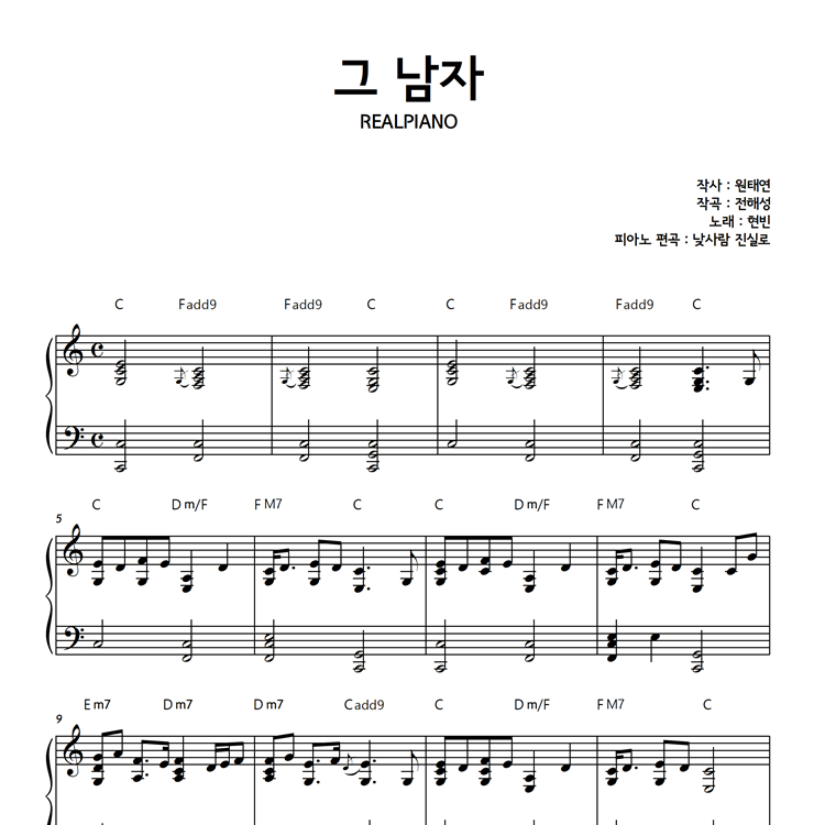 3. 리얼피아노에서 서비스되는 모든 악보는 저작권법에 의해 복제, 공유, 재판매가 엄격히 금지되어 있습니다.