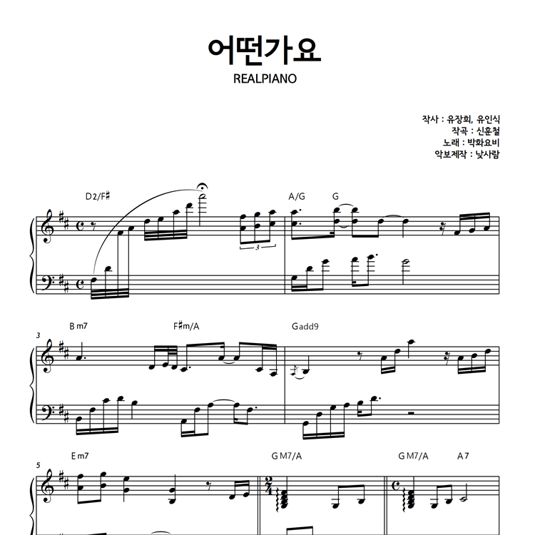 악보는 리얼피아노 3권에도 수록되어 있는데 곡 후반부의 조성 표기가 악보집에는 F# 키로 된 부분을