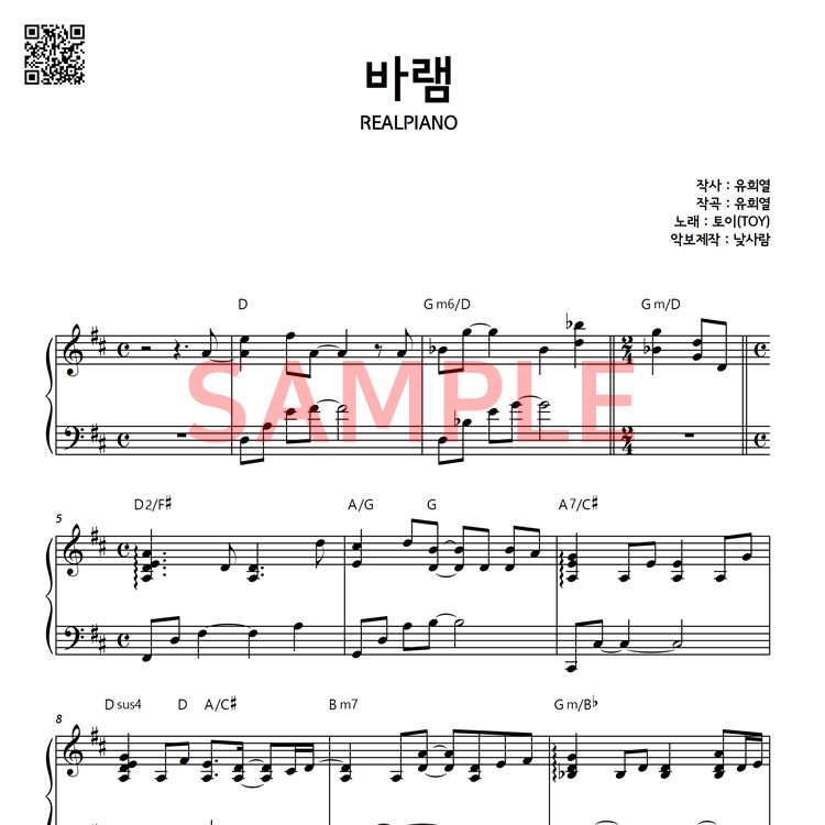 3. 리얼피아노에서 서비스되는 모든 악보는 저작권법에 의해 복제, 공유, 재판매가 엄격히 금지되어 있습니다.