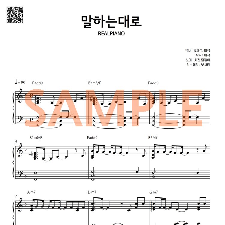 3. 리얼피아노에서 서비스되는 모든 악보는 저작권법에 의해 복제, 공유, 재판매가 엄격히 금지되어 있습니다.