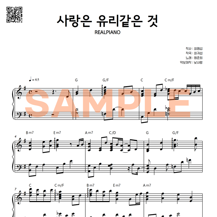 [ 원준희 - 사랑은 유리같은 것 ] 피아노 악보입니다.