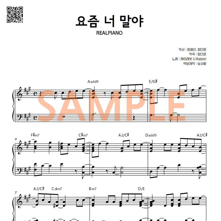 [ 제이레빗 (J Rabbit) - 요즘 너 말야 ] 피아노 악보입니다.