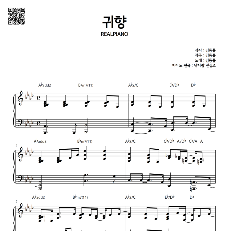 [ 김동률 - 귀향 ] 피아노 악보입니다.