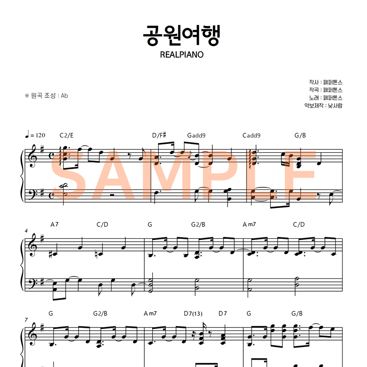 페퍼톤스 - 공원여행 (쉬운키 G) 악보입니다.