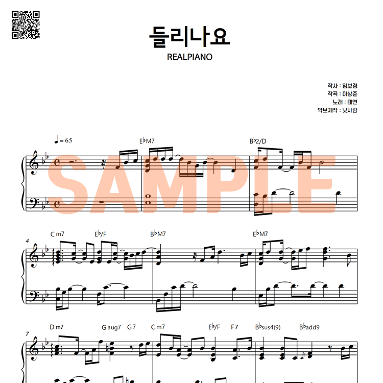 태연 - 들리나요 (베토벤 바이러스 OST) 피아노 악보입니다. 리얼피아노 1권에도 수록되어 있습니다.