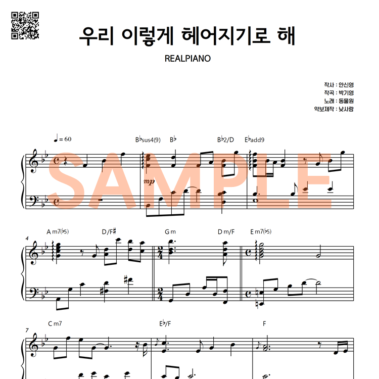 동물원 - 우리 이렇게 헤어지기로 해 피아노 악보입니다.