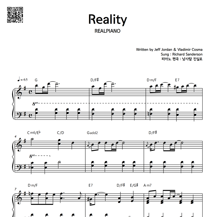 [ Richard Sanderson - Reality (라붐 OST) ] , [ 리차드 샌더슨 - 리얼리티 ] 피아노 악보입니다.