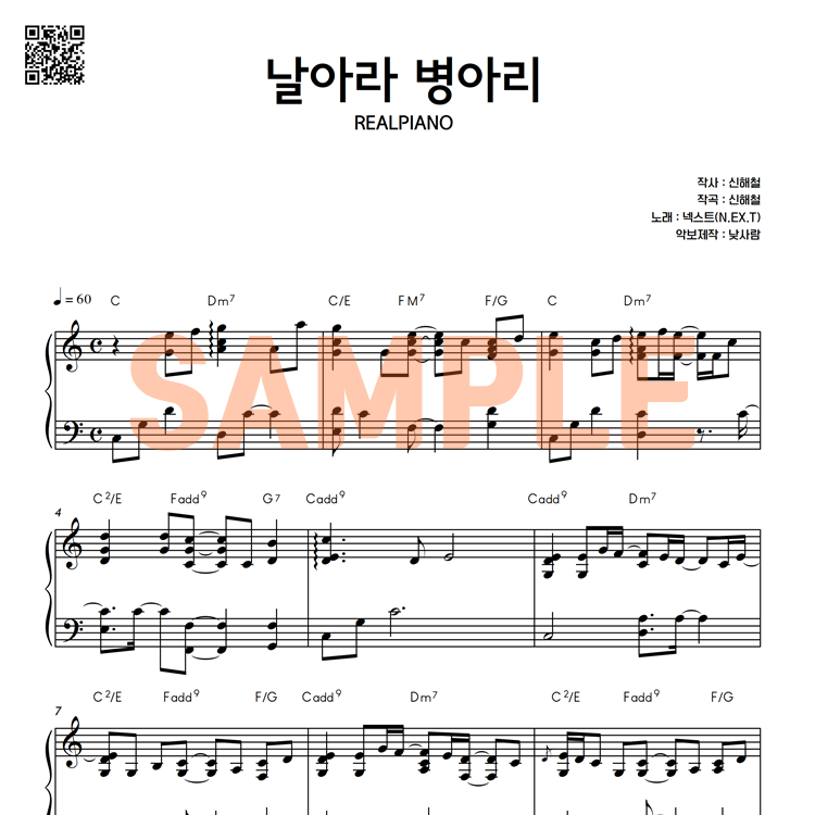 넥스트 - 날아라 병아리 피아노 악보입니다.