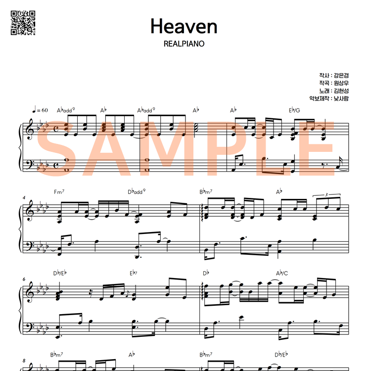 김현성 - Heaven 헤븐 (원키 Ab)피아노 악보입니다.