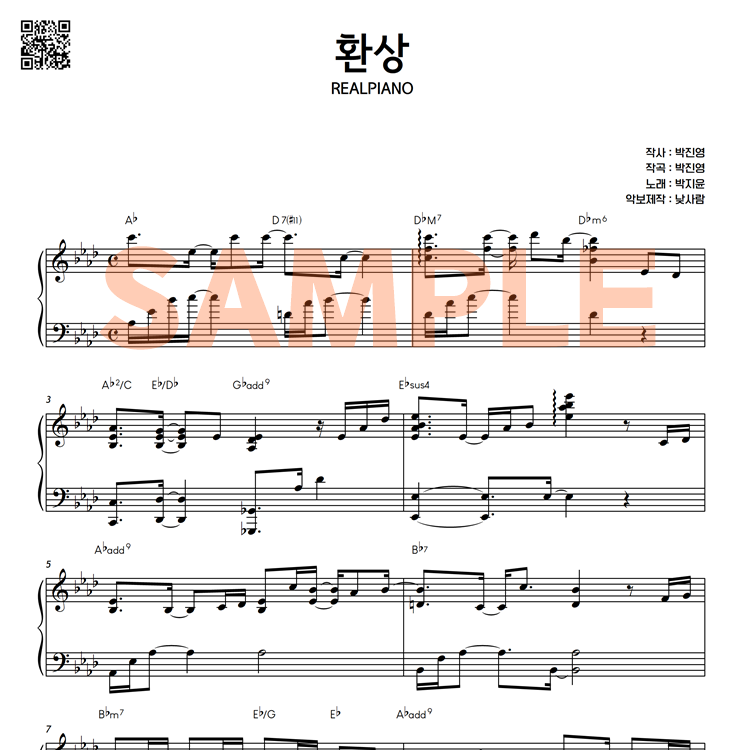 박지윤 - 환상 (원키 Ab) 피아노 악보 연주입니다.