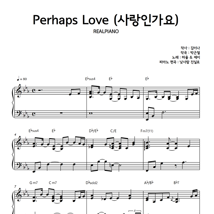 [ 하울, 제이(J) - 사랑인가요 (Perhaps Love) (궁 OST) ] 피아노 악보입니다.