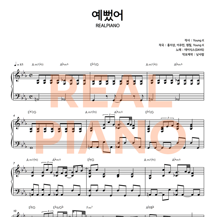 DAY6 (데이식스) - 예뻤어 피아노 악보입니다
