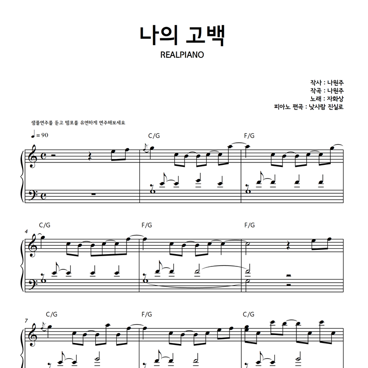 3. 리얼피아노에서 서비스되는 모든 악보는 저작권법에 의해 복제, 공유, 재판매가 엄격히 금지되어 있습니다.